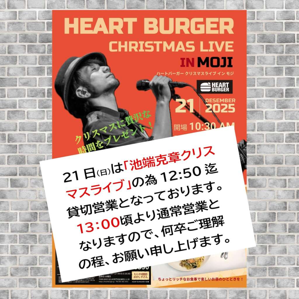 明日12月21日(日)は池端克章クリスマスライブの為、12:50迄貸切営業となります。